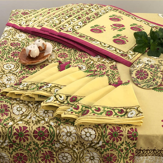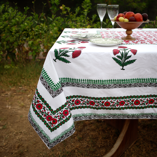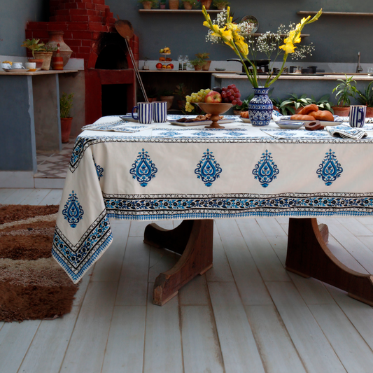 Explore our exquisite hand block printed tablecloths, crafted in various sizes to suit your lifestyle. Each meticulously crafted by skilled Pakistani artisans using traditional wood block printing.